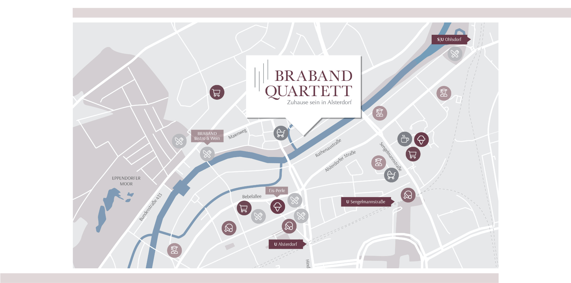 Das Braband Quartett verspricht gehobenen Wohngenuss im schönen Alsterdorf. Passend zum Thema Quartett bestand unsere Kommunikation für das Immobilienensemble aus vier Zutaten: stringenter Markenaufbau, visuelle Identität, sympathische Tonality und natürlich eine gehörige Portion Kreativität.